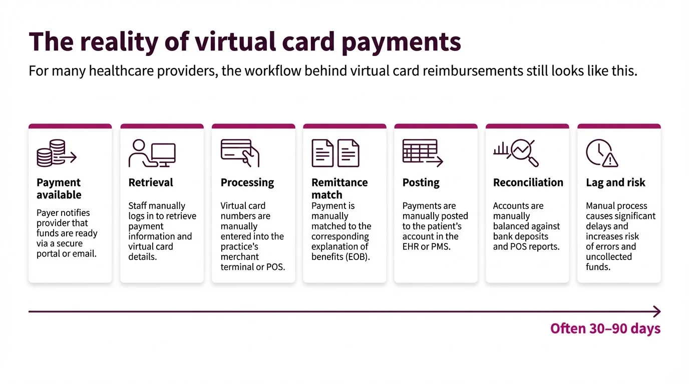 Virtual card reimbursements promise faster, digital payments for physician groups but often involve cumbersome manual workflows that undermine efficiency.