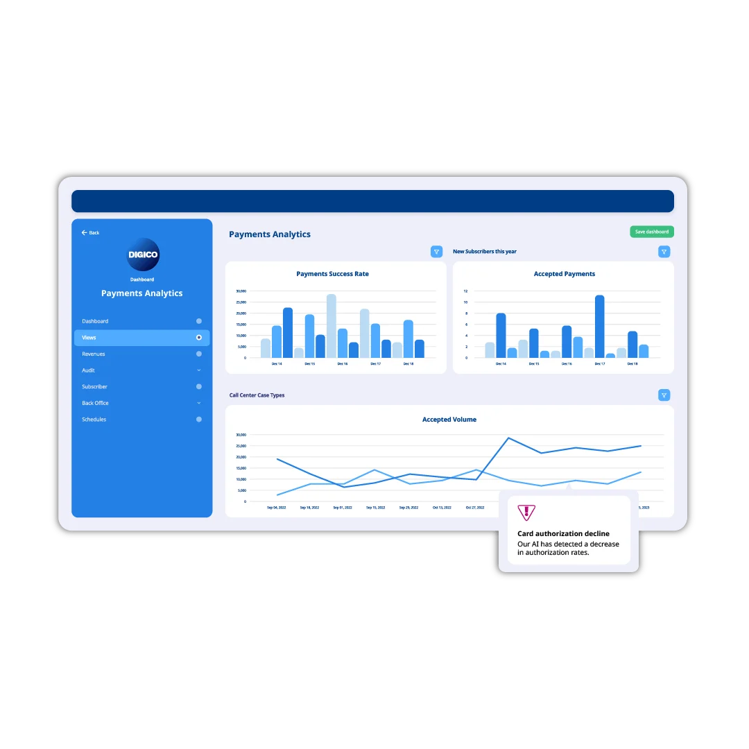 See, understand, and optimize your data from end to end with CSG Payments' analytics and reporting tools. Modernize your insights approach by combining normalized data, intuitive dashboards, and expert consulting into one solution.