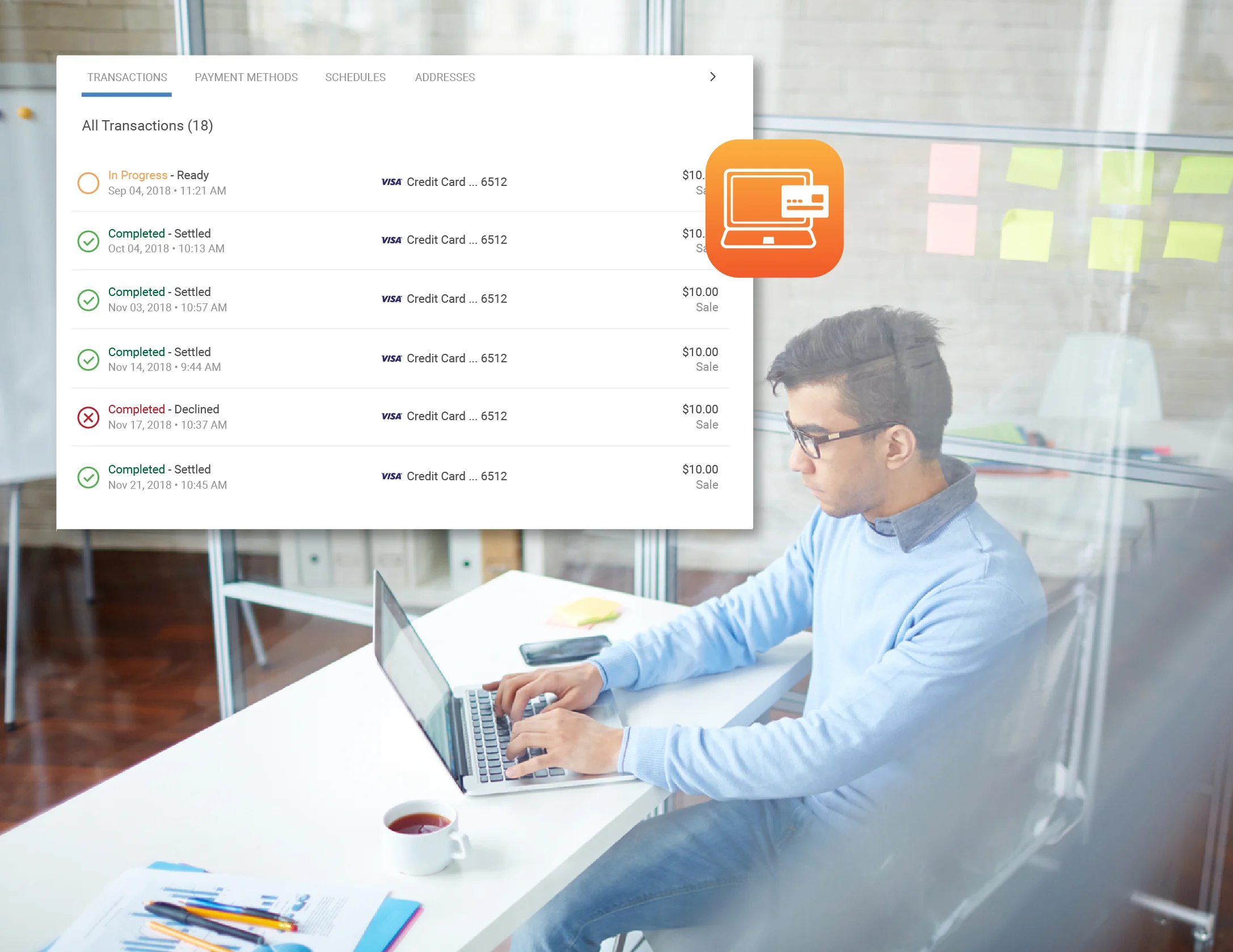 View all credit card, ACH, and electronic check transactions in a single dashboard.